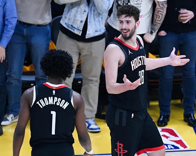 背靠背伊森也必须轮休,腹斜肌、膝盖、胫骨血栓轮番来袭。火箭管理层为何不愿为伊森开出5年1.25亿顶薪(与贾巴里·史密斯同价)?答案显而易见:耐久度不足以匹配顶薪风险。史密斯虽三分波动,但出勤率稳定,防守覆盖面广;伊森空有伦纳德模板,却染上“卡子病”。健康时,伊森是火箭攻防转换的加速器;伤停时,球队只能靠泰特或者杰夫格林去支撑侧翼。但即便伤病不断,火箭仍能以残阵碾压对手,核心在于杜兰特的统治级存在。